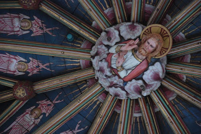 These beautiful biblical characters were painted on to the wooden ceiling in Victorian times .
